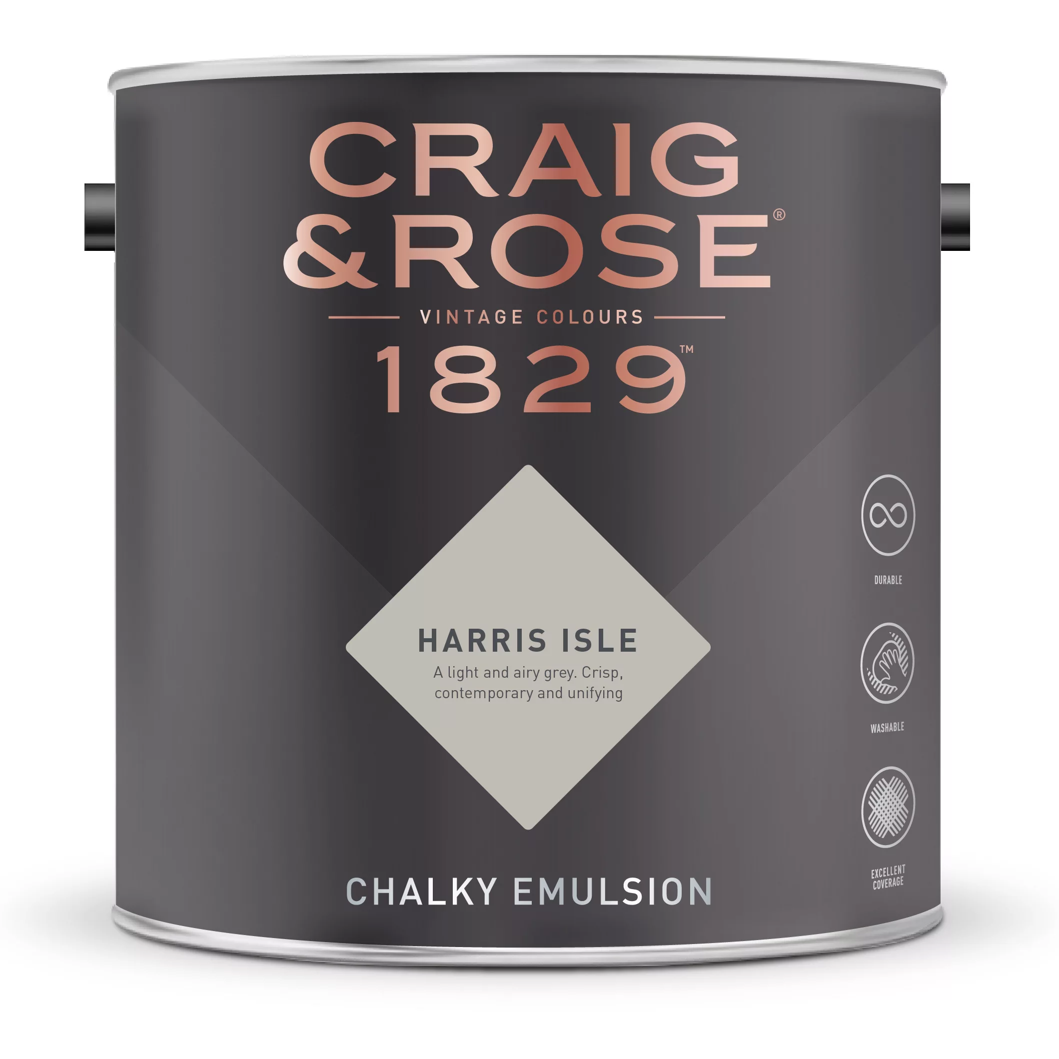The Craig & Rose 1829 collection carefully selects from the Craig & Rose vintage colour archive and other historical sources, offering 110 colours in three quality finishes. Offering unparalleled depth of colour and clarity, 1829 is easily a showstopper within the home. Craig & Rose are famous for their durable Chalky Emulsion – a luxurious soft and chalky matt finish with excellent depth of colour, superior coverage and a finish that can be wiped down. This renowned emulsion is perfect for interior walls and ceilings and can also be used for upcycling furniture when finished with a protective wax or varnish. Anstruther Blue is an architectural grey for restful spaces. Gentle, graceful, and flushed with atmospheric brightness. Use with 1829 White Undercoat.