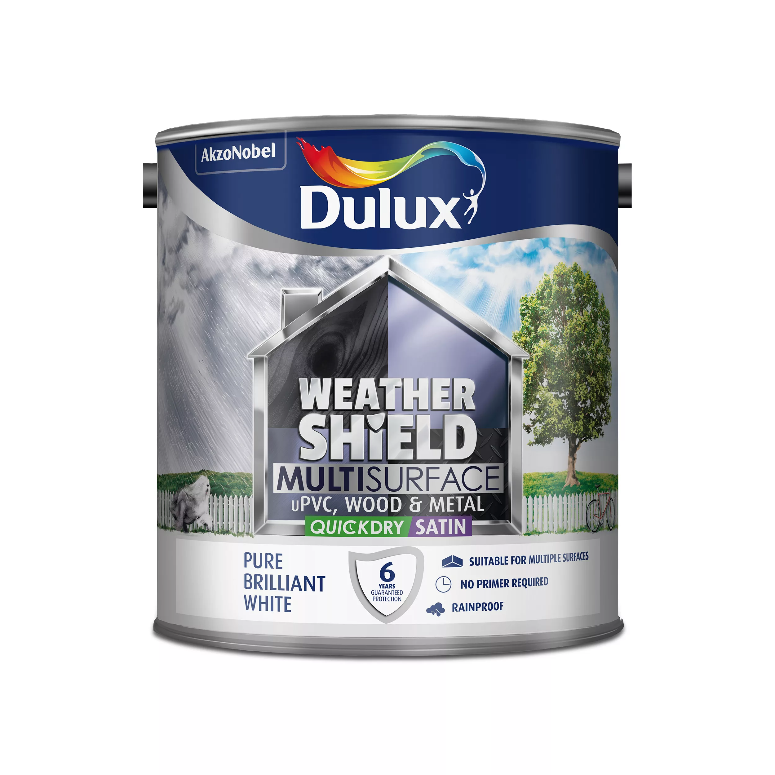 Dulux Weathershield Pure Brilliant White Satinwood Multi-surface Paint, 2.5L