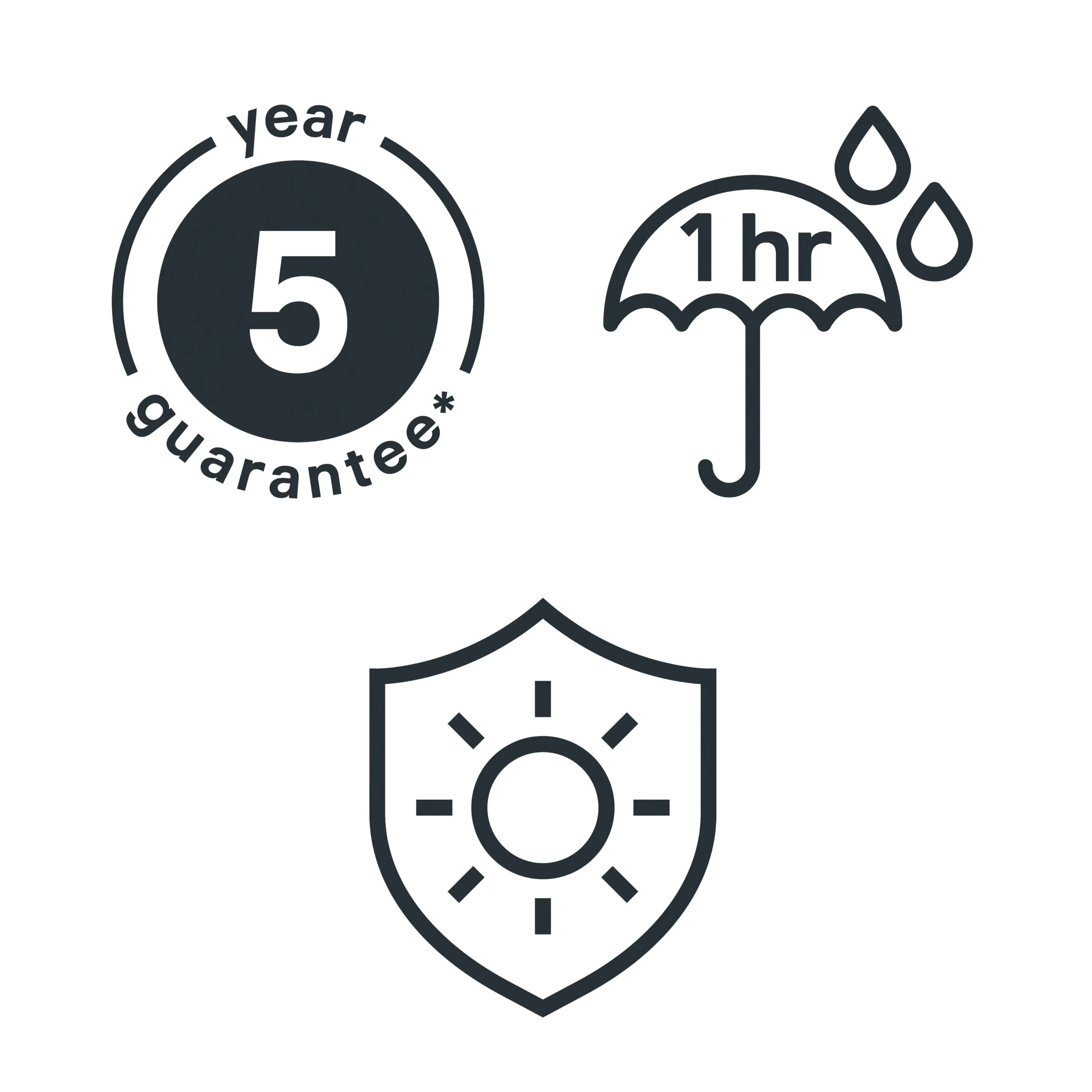 - Shower Resistant in 1 hour