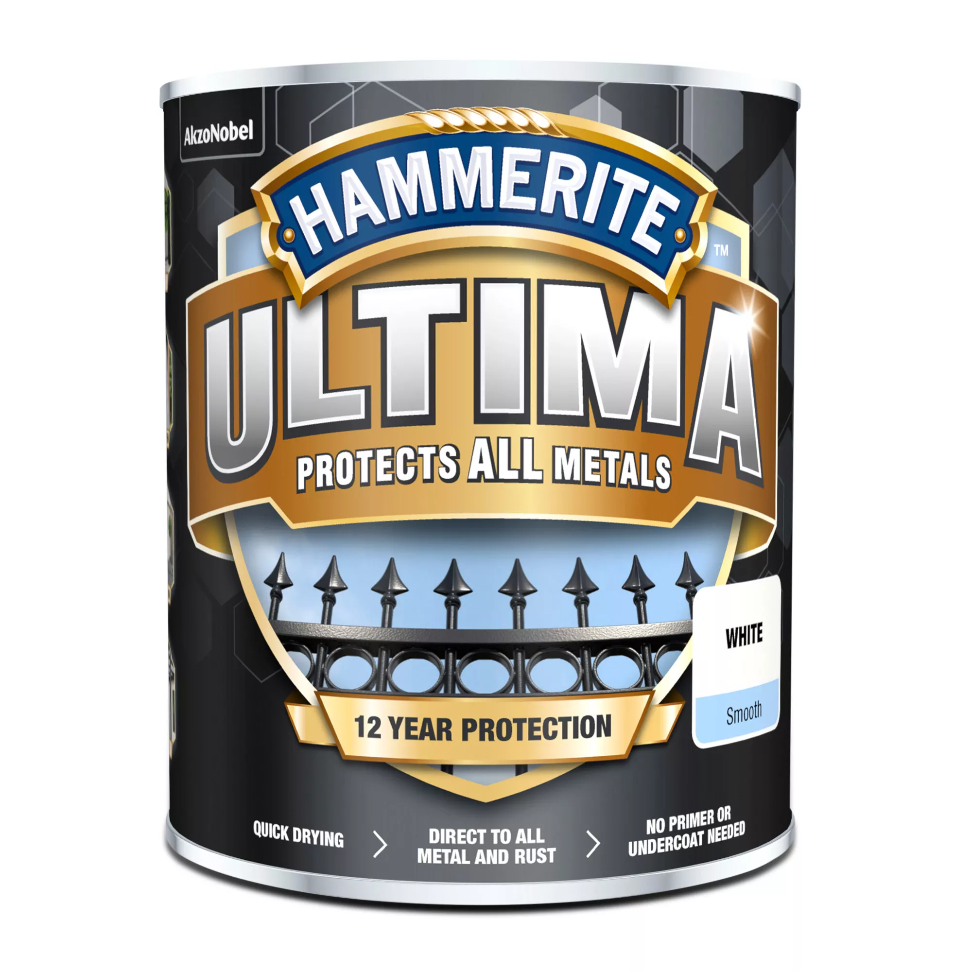 A brilliant Hammerite exterior gloss metal paint that is suitable for use on multi-surface, making it a great choice to give your home a refresh. White is a clean colour that will add a contemporary feel to your scheme. The topcoat should be applied on any iron surfaces to create a consistent finish. After application, this metal paint will accomplish a impeccably gloss surface that will look good as new for a long time. This 750ml size will cover up to 7.5 m² on average, so you can buy exactly what you need to complete your decorating job. For maximum results, apply using a brush. This paint needs 2 coats to look its best, but its quick drying formula makes up for lost time, as you can recoat after just 4 hours. This paint offers top quality protection, designed to be resistant to water and rust, making it an ideal choice to use on surfaces outdoors. Also, you can be assured that this water-based paint is safe for you in your home, as it has minimal VOCs.