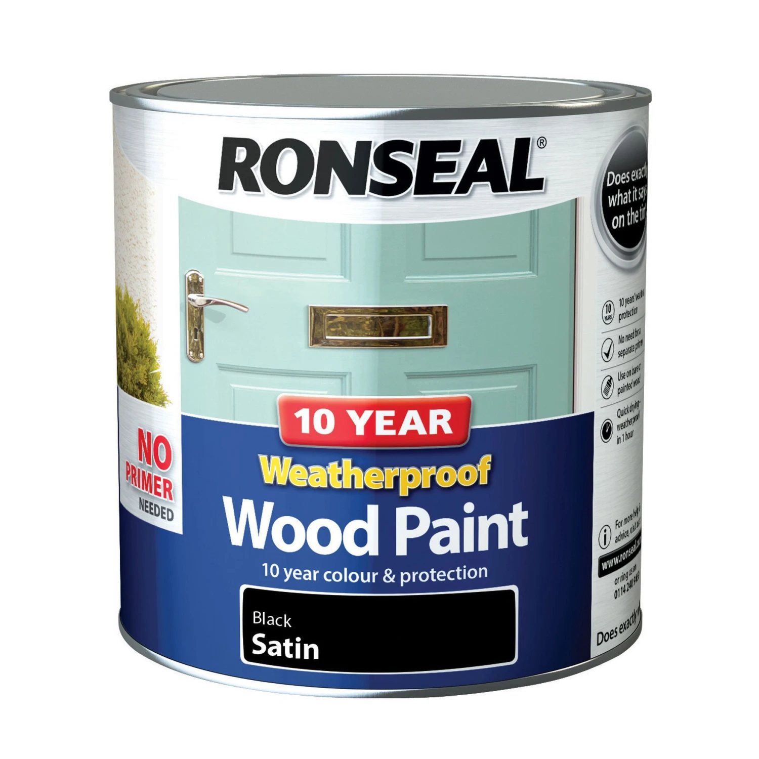 A brilliant Ronseal exterior satinwood wood paint that is a great choice to give your home a refresh. Black is a versatile colour that will add a contemporary feel to your design. The paint should be applied on any wood surfaces to create a consistent finish. Use this wood paint to create an effortlessly satinwood finish with easy application and minimal cleanup. This 2.5L size contains enough paint to cover up to 21 m² on average. You can use a brush to apply an even layer. It will dry quickly between coats meaning you can recoat it in 4 hours. This paint offers top quality protection, designed to be resistant to cracking, making it an ideal choice to use on surfaces outdoors. Also, you can be assured that this water-based paint is safe for you in your home, as it has minimal VOCs.